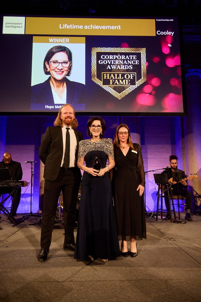 In 2023, Hope was inducted into the “Corporate Governance Hall of Fame” by Governance Intelligence. She was the recipient of Corporate Secretary’s 2019 Governance Professional of the Year (Large Cap) Award. Global Proxy Watch recognized Hope in its 2019 list of ten people around the world who have had a breakthrough impact in corporate governance. Hope previously served as Co-Chair of the Board of Directors of the Council of Institutional Investors and a member of Broadridge’s Independent Steering Committee.